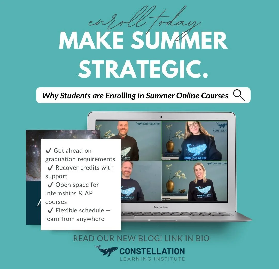 Constellation Learning Institute is a flexible, engaging and inclusive accredited online school for curious students in grades 6-12. Whether your student needs a single course, part-time, or full-time enrollment, we have options to best serve your family of thrivers.